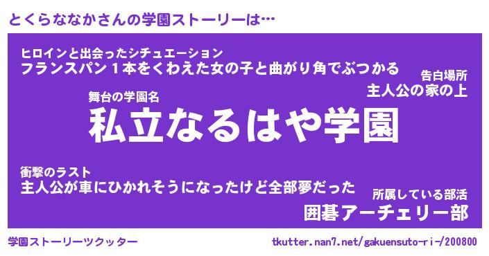 | 胡散臭い通販商品みたいなあだ名 | 『必ず成功する水晶球…その名も「とくらななか」』 |