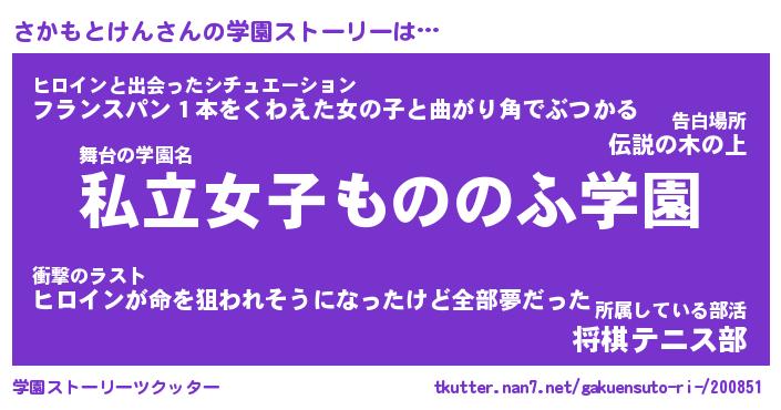 | 女子向けラノベタイトル風あだ名 | 『誰かこのさかもとけんを説明してください! ~契約から始まるウェディング~』 |