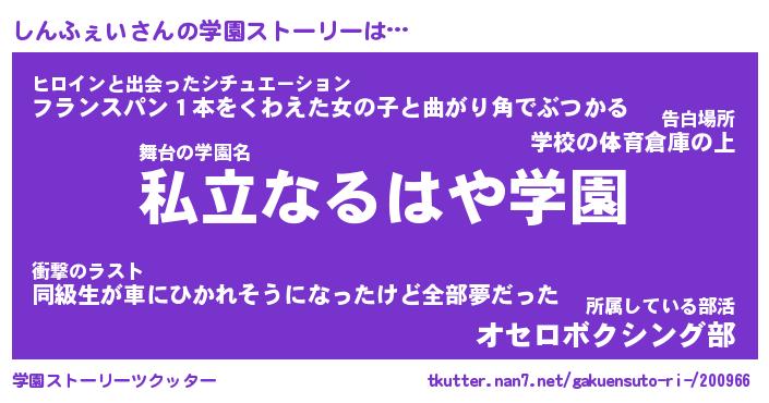 | 男性向けラノベタイトル風あだ名 | 『しんふぇいの憂鬱』 |