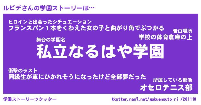 | ファンタジー風あだ名 | 『ルビフェル』『エターナルルビデー』 |