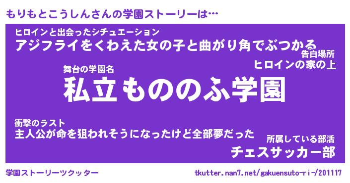 | 男性向けラノベタイトル風あだ名 | 『もりもとこうしんの憂鬱』 |