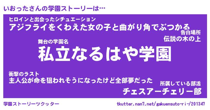 | 男性向けラノベタイトル風あだ名 | 『いおったの憂鬱』 |