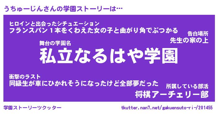 | 男性向けラノベタイトル風あだ名 | 『うちゅーじんの憂鬱』 |
