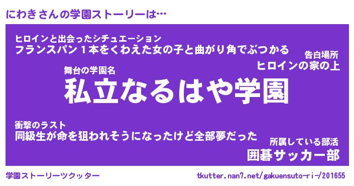 | ファンタジー風あだ名 | 『ニワフェル』『エターナルニワキー』 |