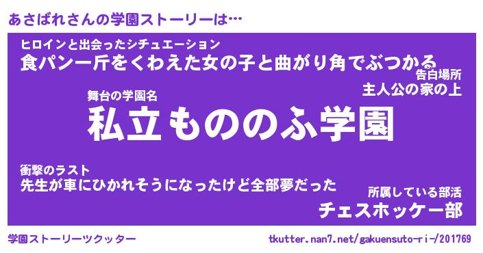 | 男性向けラノベタイトル風あだ名 | 『あさばれの憂鬱』 |