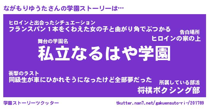 | 女子向けラノベタイトル風あだ名 | 『(仮)ながもりゆうたのやんごとなき事情』 |