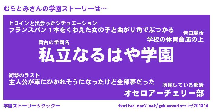 | 女子向けラノベタイトル風あだ名 | 『(仮)むらとみのやんごとなき事情』 |