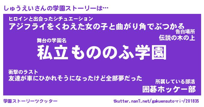 | 男性向けラノベタイトル風あだ名 | 『しゅうえいの憂鬱』 |