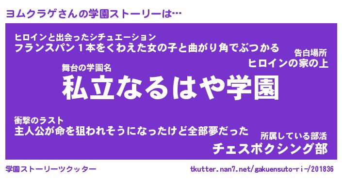 | 男性向けラノベタイトル風あだ名 | 『ヨムクラゲの憂鬱』 |