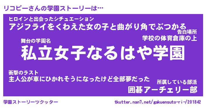 | 女子向けラノベタイトル風あだ名 | 『リコピー姫と円卓の騎士』 |
