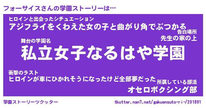 | 男性向けラノベタイトル風あだ名 | 『フォーサイスアートオンライン』 |