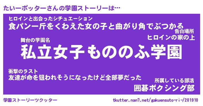 | 女子向けラノベタイトル風あだ名 | 『誰かこのたいーポッターを説明してください! ~契約から始まるウェディング~』 |
