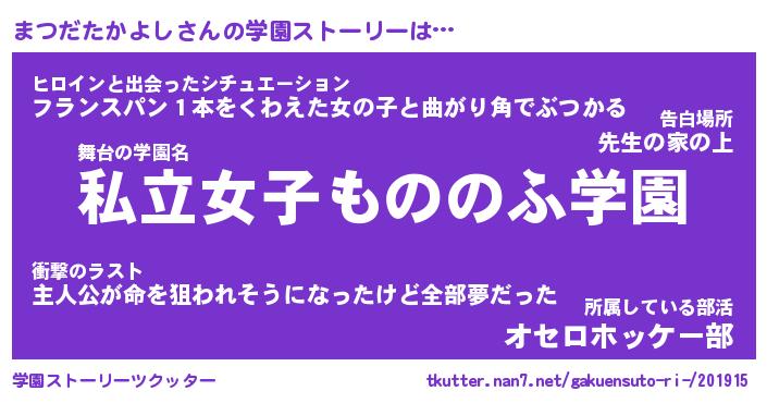 | 女子向けラノベタイトル風あだ名 | 『誰かこのまつだたかよしを説明してください! ~契約から始まるウェディング~』 |