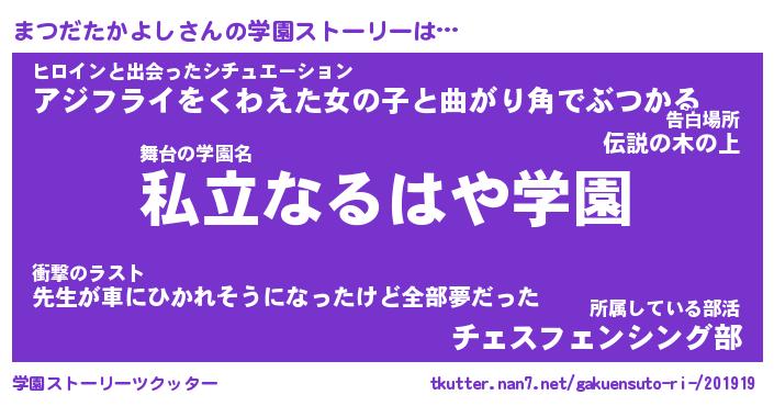 | 男性向けラノベタイトル風あだ名 | 『まつだたかよしの憂鬱』 |