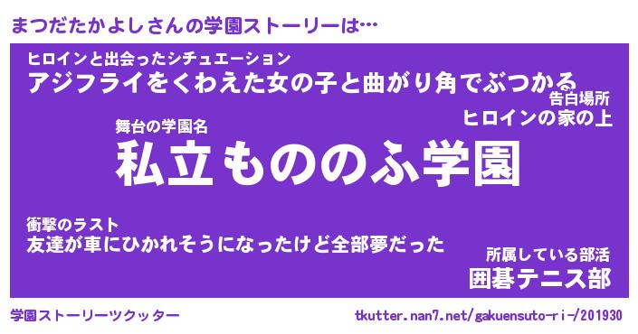 | 男性向けラノベタイトル風あだ名 | 『まつだたかよしの憂鬱』 |