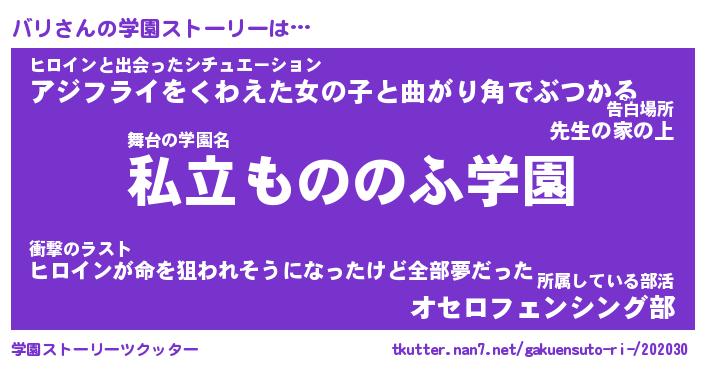 | 女子向けラノベタイトル風あだ名 | 『バリ姫と円卓の騎士』『バリ伯爵の花嫁』 |