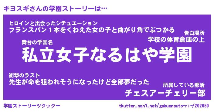 | 男性向けラノベタイトル風あだ名 | 『キヨスギアートオンライン』 |
