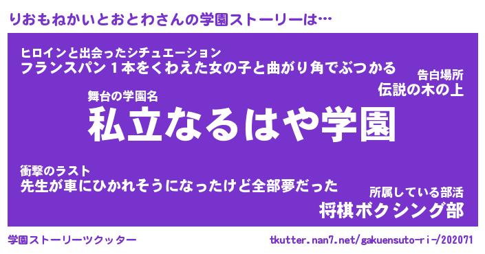 | 女子向けラノベタイトル風あだ名 | 『(仮)りおもねかいとおとわのやんごとなき事情』 |
