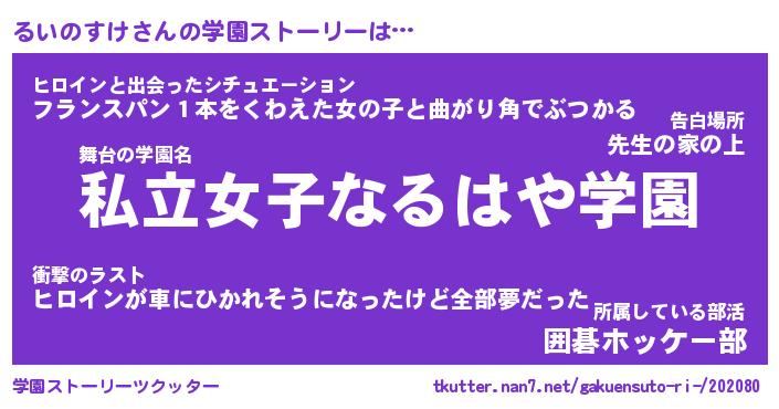 | 女子向けラノベタイトル風あだ名 | 『誰かこのるいのすけを説明してください! ~契約から始まるウェディング~』 |