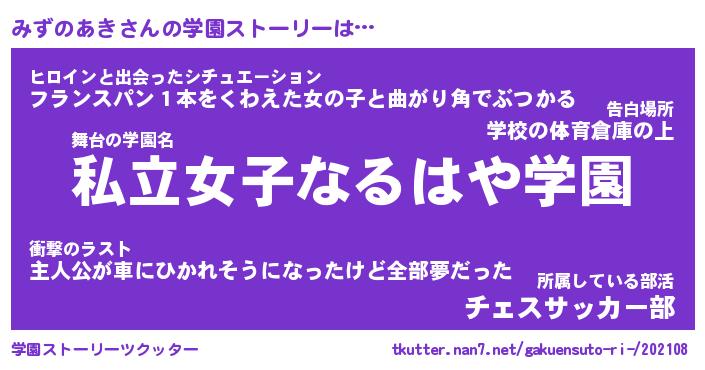 | ファンタジー風あだ名 | 『ミズフェル』『エターナルミズノアキー』 |
