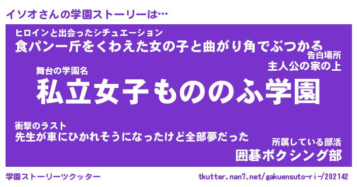 | 女子向けラノベタイトル風あだ名 | 『イソオ姫と円卓の騎士』『イソオ恋絵巻』 |
