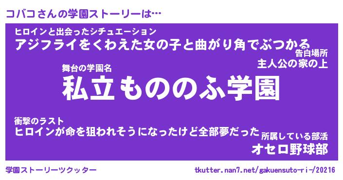 | 女子向けラノベタイトル風あだ名 | 『コバコ姫と円卓の騎士』 |