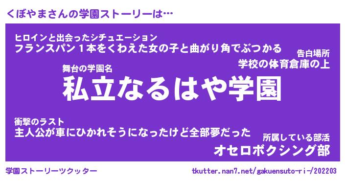 | ヒーロー風カッコイイあだ名 | 『スーパークボヤマ』『幻影騎士クボ』 |