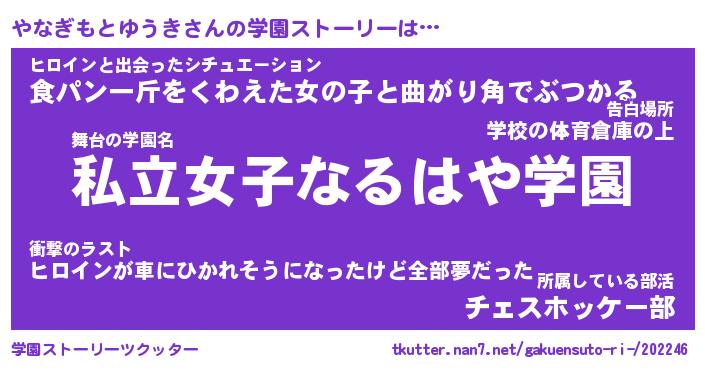 | 女子向けラノベタイトル風あだ名 | 『誰かこのやなぎもとゆうきを説明してください! ~契約から始まるウェディング~』 |