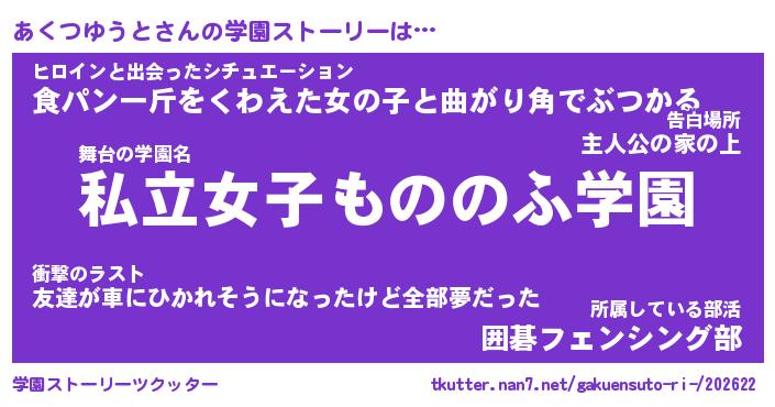 | 伝説のあだ名 | 『不死鳥の竜騎士あくつゆうと』 |