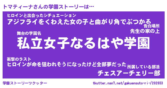 | 告白場所 先生の家の上 …「ふぃぎゅこ」 | 2月17日 06:24 |