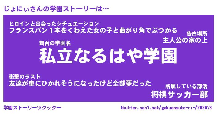 | 告白場所 先生の家の上 …「ふぃぎゅこ」 | 2月17日 06:24 |