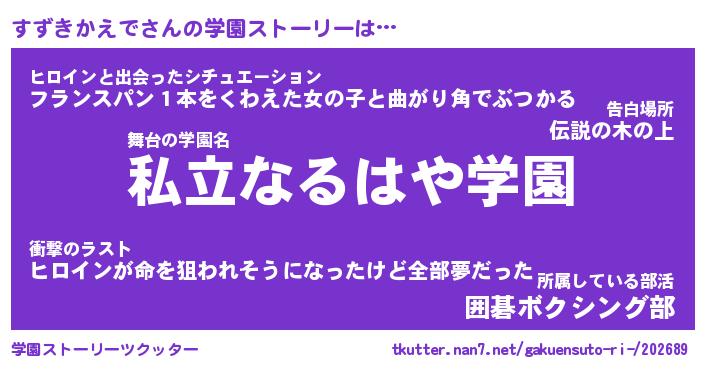 | 胡散臭い通販商品みたいなあだ名 | 『必ず成功する霊験あらたかなお札…その名も「すずきかえで」』 |