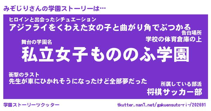 | 男性向けラノベタイトル風あだ名 | 『ミゾジリアートオンライン』 |