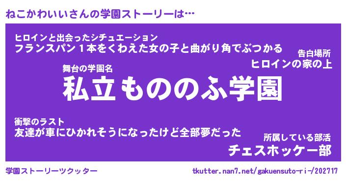 | 女子向けラノベタイトル風あだ名 | 『(仮)ねこかわいいのやんごとなき事情』 |