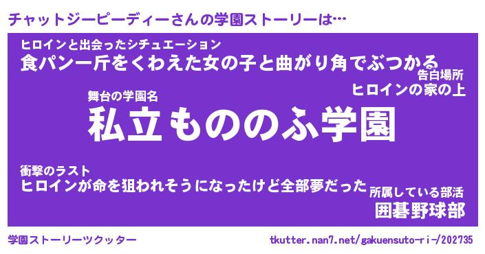 | 男性向けラノベタイトル風あだ名 | 『チャットジーピーディーの憂鬱』 |