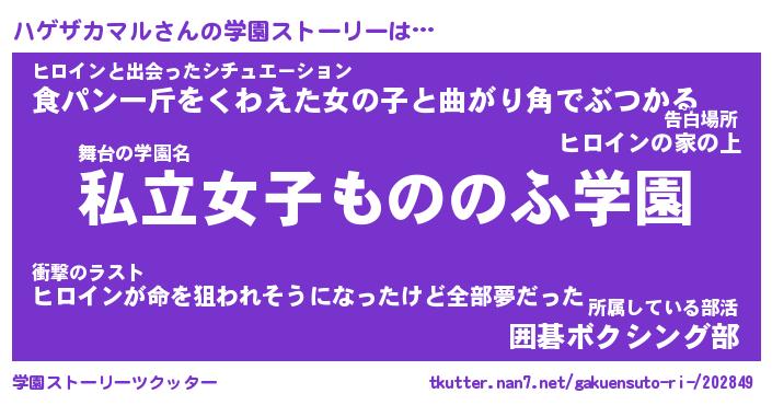 | ヒーロー風カッコイイあだ名 | 『スーパーハゲザカマル』『魔戒騎士ハゲ』 |