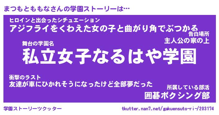 | 男性向けラノベタイトル風あだ名 | 『マツモトモモナアートオンライン』 |