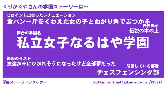 | 肩書あだ名 | 『くりかぐや店長』『くりかぐや総理大臣』 |