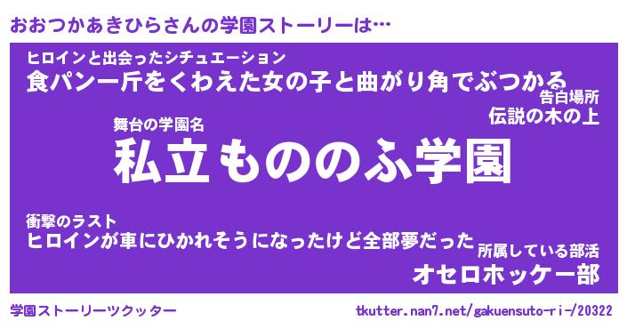 | 男性向けラノベタイトル風あだ名 | 『おおつかあきひらの憂鬱』 |