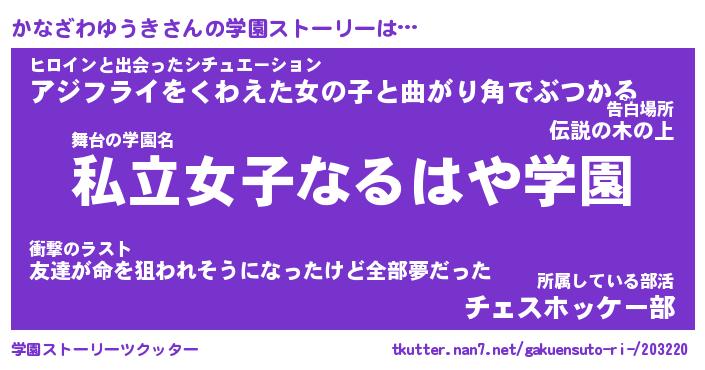 | 女子向けラノベタイトル風あだ名 | 『誰かこのかなざわゆうきを説明してください! ~契約から始まるウェディング~』 |