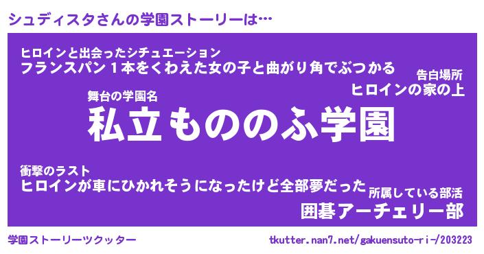 | 女子向けラノベタイトル風あだ名 | 『シュディスタ姫と円卓の騎士』 |