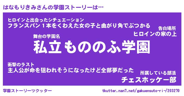 | 男性向けラノベタイトル風あだ名 | 『はなもりきみの憂鬱』 |