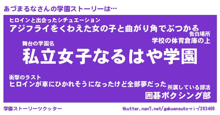 | 女子向けラノベタイトル風あだ名 | 『あづまるな姫と円卓の騎士』 |