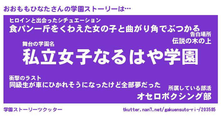 | 伝説のあだ名 | 『封印されしスナイパーおおももひなた』 |