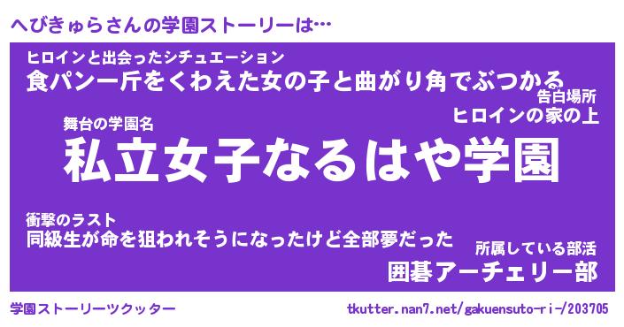 | ヘコむあだ名 | 『へびにゅー』『牛乳』『へび太郎』 |