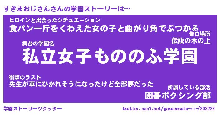 | 告白場所 先生の家の上 …「ふぃぎゅこ」 | 2月17日 06:24 |