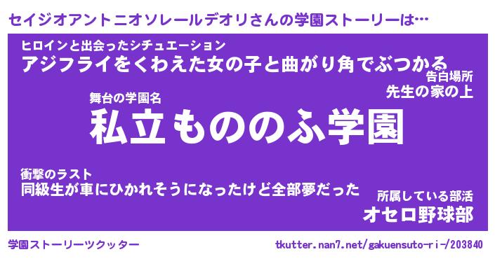 | 伝説のあだ名 | 『伝説の竜騎士セイジオアントニオソレールデオリ』 |