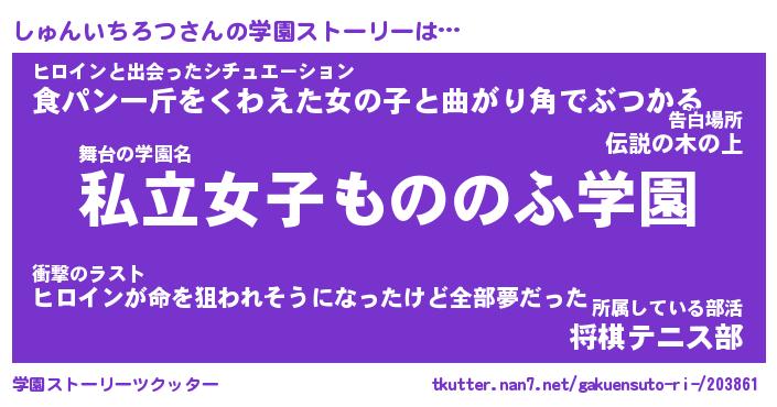 | 女子向けラノベタイトル風あだ名 | 『しゅんいちろつ姫と円卓の騎士』 |