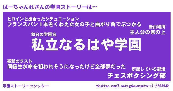 | ヒーロー風カッコイイあだ名 | 『スーパーハーチャンレ』『幻影騎士ハー』 |