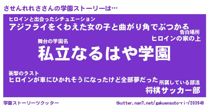 | 男性向けラノベタイトル風あだ名 | 『させんれれさの憂鬱』 |